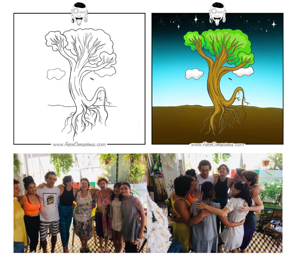 We began in meditation, drinking sweet herbal tea and sharing how we feel about our bodies…and then we danced. I danced mostly with my eyes closed and after a while, I began to feel as if I was dancing with the energies around my body. As a lofty person, I am used to taking energy in from above, but in this grounded dance, I felt like I was sucking energy up my legs, other energy I danced with which I pulled down, and with both movements, I was powering my core. I felt like I was dancing like Tai Chi, swaying energy around me, dancing with energy as my dance partner, and pulling more and more energy up my roots; yes I felt like a dancing tree.