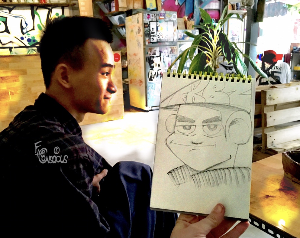 I found it so funny I showed the guys who works a Bánh mì stall out of the cafe. Me mused over my designs then asked to draw his own. He reveals he has a street crew named Funky Boyz – dope! This will be a collaborated art piece when I’m done with it!