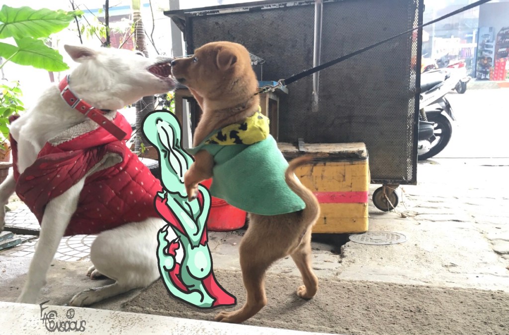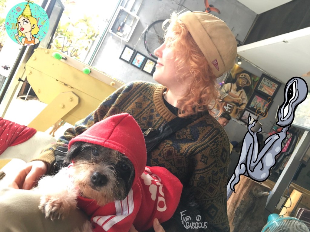 This dog isn’t friends with just anybody, including me. Daily at my coffee spot, I give my hand to sniff, met with little interest, in the hopes I can at least build familiarity. Today both of us sat by the rain. Many dogs are wearing jackets this season in DaNang.