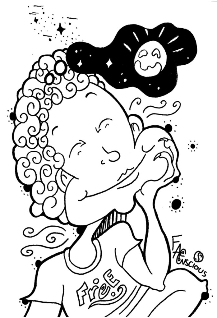Wow, after I wrote and drew this, I saw this on the wall. I’ve technically seen it before, but never actually read or took notice of it, but I did today. It’s clear how frequencies vibe.