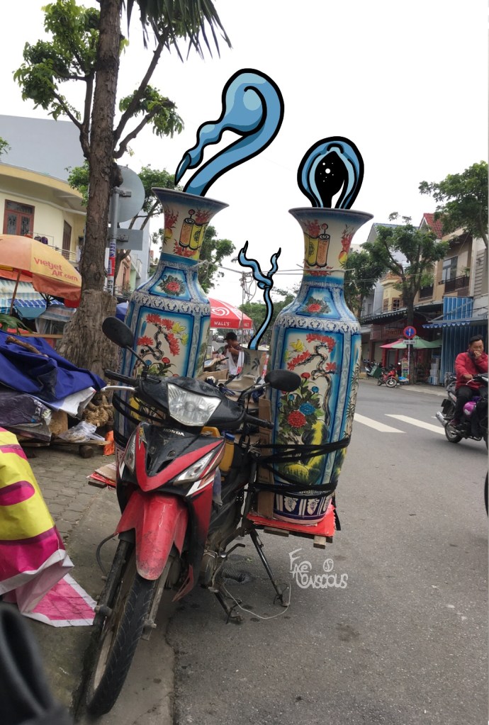 On my way home, a fairly typical motorbike stack! Um Monty!